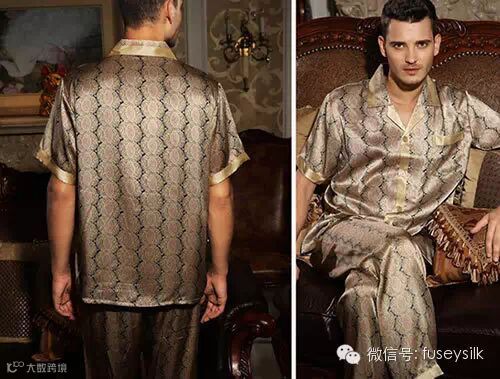 富事丝绸真丝男士睡衣,优雅大气的翻领,更显平凡中的贵气;简约大方的口袋设计,彰显男士的大气。精美的镶边,奢华尽显。精美礼盒包装,送礼更有档次!!!