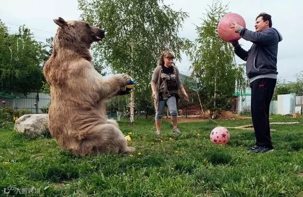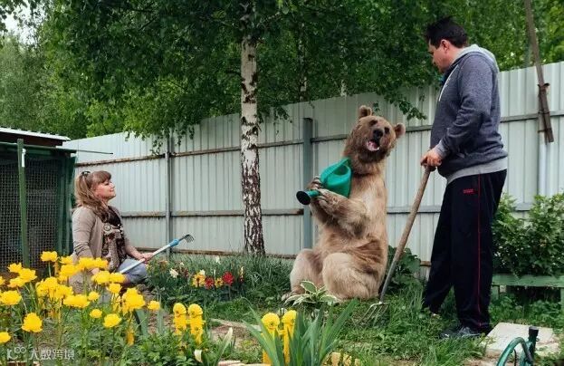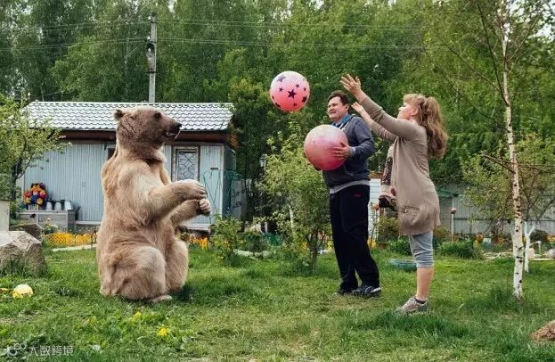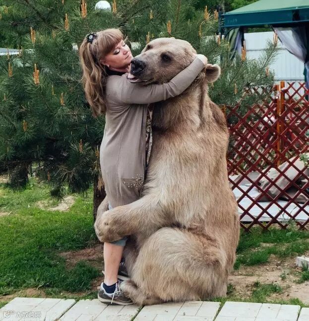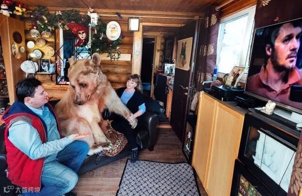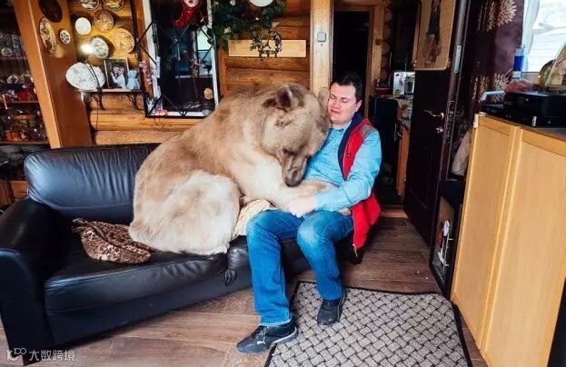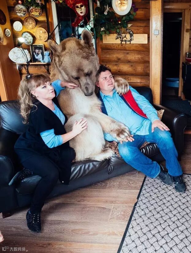 这只名叫斯捷潘的巨型棕熊在3个月大时被一对俄罗斯夫妇收养,到现在他们已经甜蜜地生活了23年。。