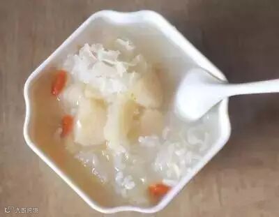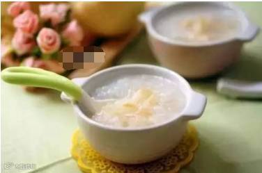 做法:干银耳10克,大米50克。将银耳水发洗净,撕碎与米同煮为粥食用。