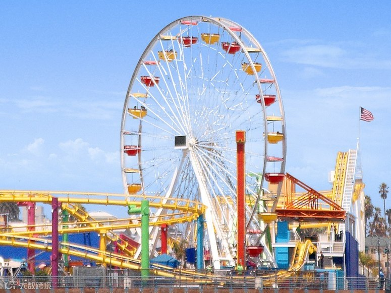 圣塔莫尼卡码头(加利福尼亚州圣塔莫尼卡) 在摩天轮上激吻,转到最高点时再与爱人共享一杯奶昔,是否刺激非常?这儿,您可以看到洛杉矶和大海的全部美景。"