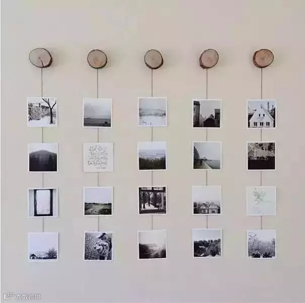 不用买相框,一根带子从天花板拖下来,好随意,也很可爱。