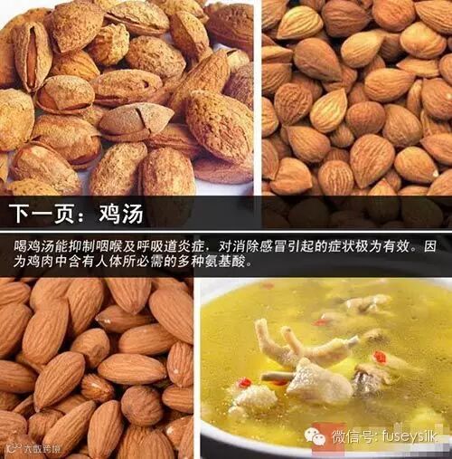 喝鸡汤能抑制咽喉及呼吸道炎症,对消除感冒引起的症状极为有效。因为鸡肉中含有人体所必需的多种氨基酸,能显著增强机体对感冒病毒的抵抗能力,鸡肉某种化学物质,对保护呼吸道通畅,加速感冒痊愈有良好的作用。