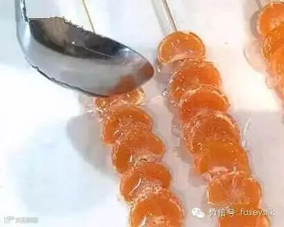 3、鉴定糖液是否可以的最好办法:准备筷子蘸一下,放入冷水中,20秒后拿出来,咬一下看是否凝固且不粘牙