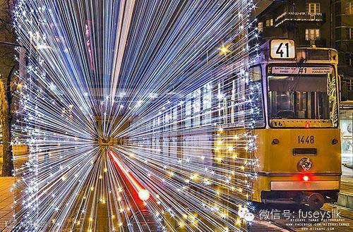很多城市在节日期间都会使用灯光来增添节日气氛,匈牙利首都布达佩斯也一样,每年冬天,这个城市被喜庆的灯光照亮了,其中最有趣的要属用30000个明亮的LED灯装饰起来的有轨电车了。看看这些摄影师长时间曝光拍摄的照片吧,真的很酷,这些电车好似变成了可以穿梭宇宙或者能够时间旅行的时间机器,很神奇。