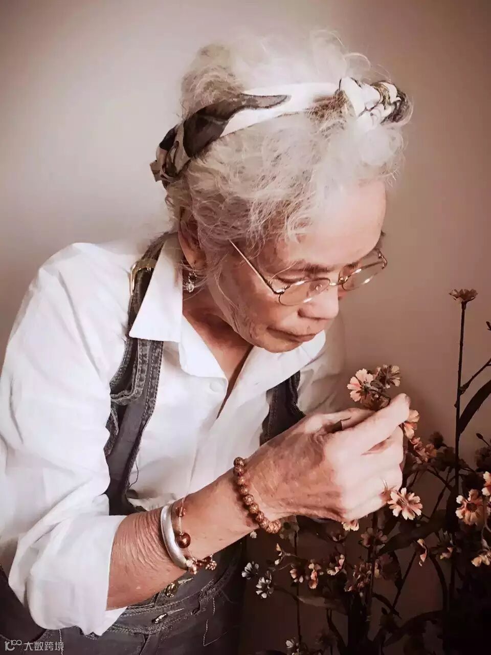 她依然喜欢鲜花。