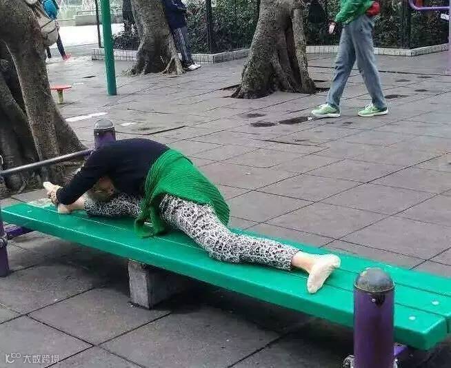 她坚持锻炼,可以轻松来个一字马。