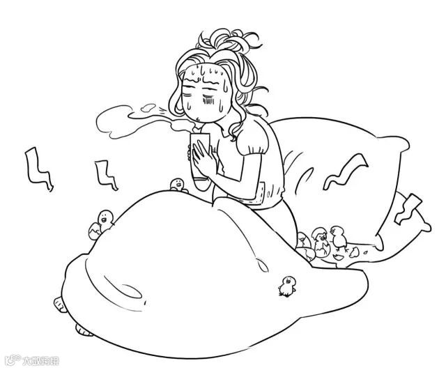 喝着滚烫的红糖姜水敷着暖宝宝盖着被。