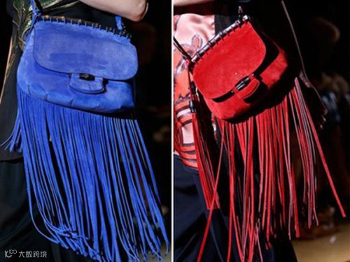 Gucci2014春夏系列女包,手拿包的款式,加入流苏元素,增加包包的独特性。