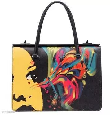 用设计师的话来说,这款2014春夏包袋对色彩与图案做了大胆诠释,艺术性的壁画印花和波普风格人物肖像贯穿起来,让包袋“生动”起来。