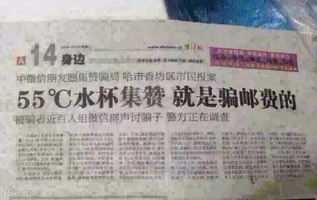 最近55度杯占领了朋友圈,微信朋友争相转发分享参与活动,一时间全民总动员不亦乐乎,俨然已经成了跨年爆款。但是本人天生悲观,只相信飞来横祸,从来不相信会有天上掉馅饼的好事儿!所以这几天一直询问圈里(这么说好像自己很牛逼的样纸~)的朋友,大致了解了风靡朋友圈的“55度杯”到底是个什么东西,你们都被骗啦!