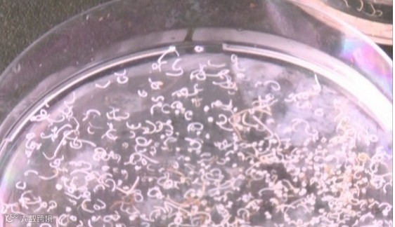 医生说,从黄鳝沉渣里挑出来的叫做颚口线虫,用肉眼看非常小,最长的可能也就几毫米,实验人员在我们买的10斤黄鳝中,找到了250条颚口线虫!而这些只是颚口线虫的幼虫,它们在黄鳝体内还会长大!