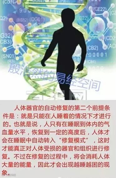 这是人体自愈系统作用的结果。现代人体康复学研究发现,我们每个人的身体,其实都有着强大的自愈功能,都能自动对身体受损的器官进行修复工作,不过这种“自动”有两个前提条件,第一个前提条件就是必须保证身体的“气血量”水平维持在一定的高度才行。用手机来举例,就是你要有足够的电量。手机没电了就需要充电,人的气血量不足了,同样通过睡眠才能恢复。