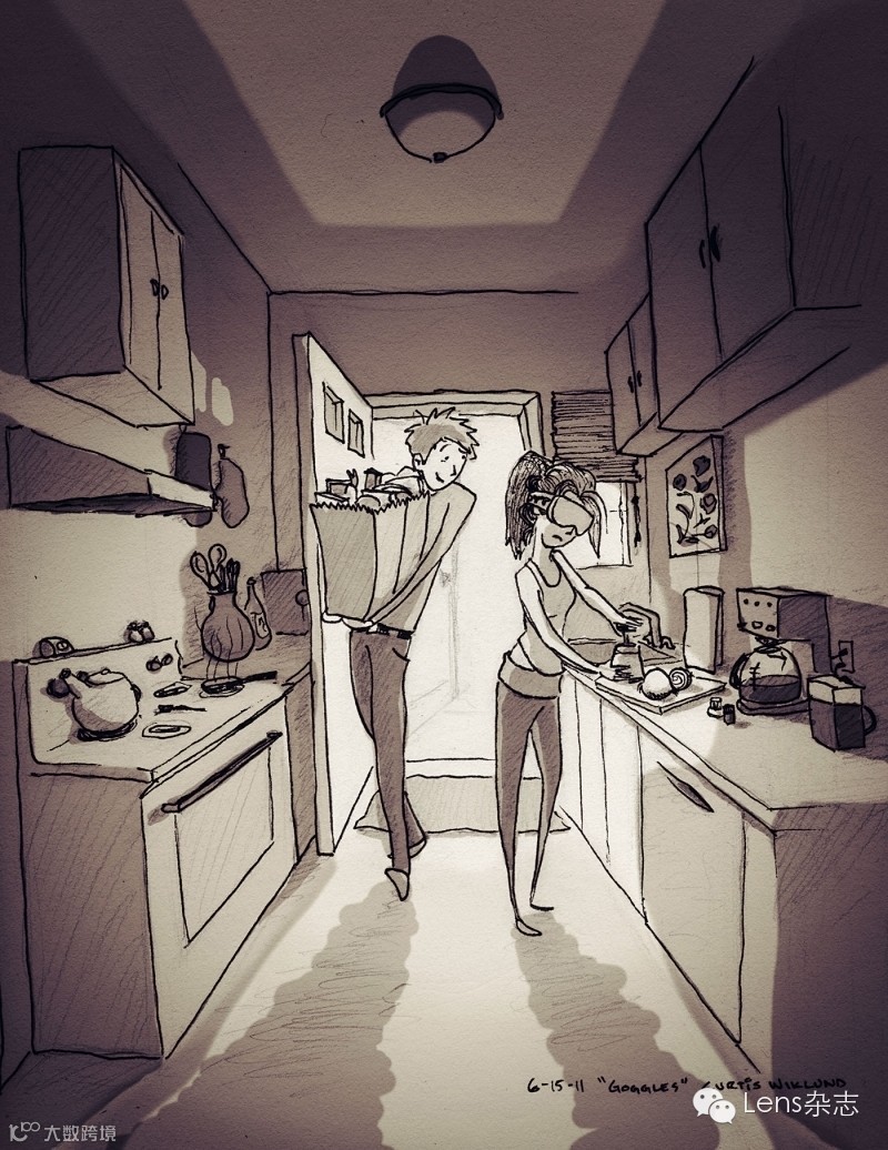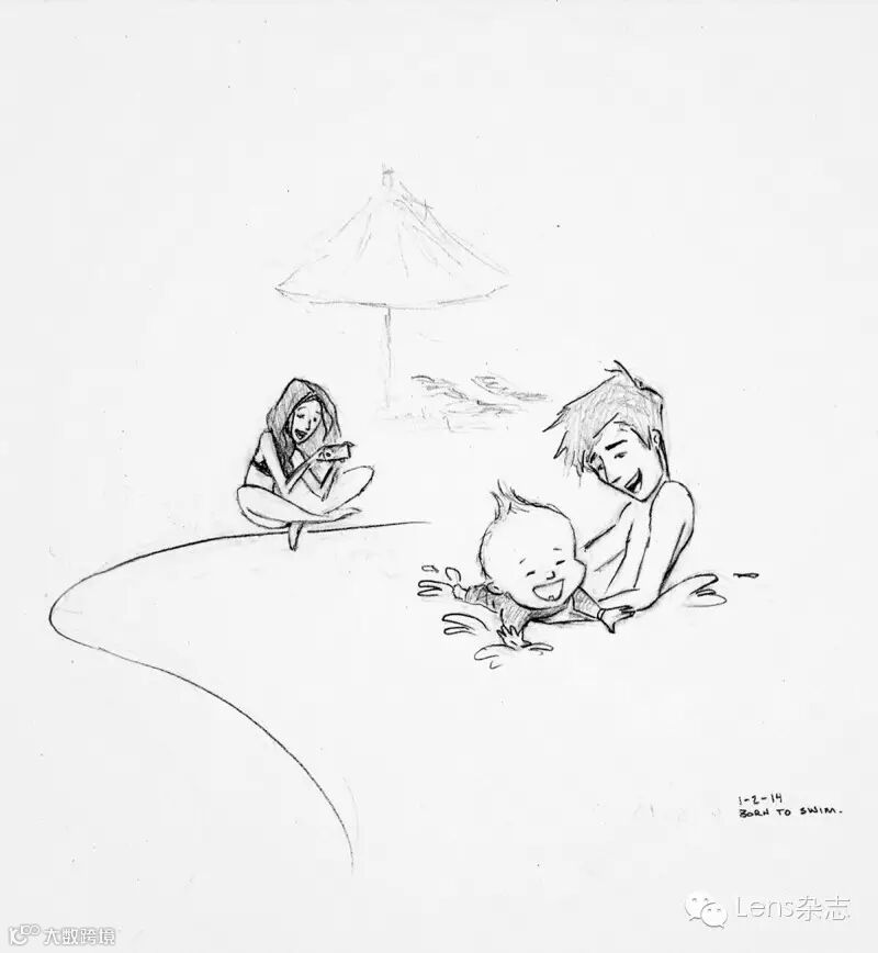 一起在海边晒太阳,一起穿过隧道看尽头的光,一起在寒冷的冬天感冒……婚姻生活琐碎却又富丽迷人。Curtis Wiklund的绘本《365天》,用记日记的方式记录了与妻子Jordin生活的温暖细节。完成绘本后,Curtis仍然常常为妻子画画,表达爱意。而画面也从最初的两个人,变成如今的三个人。