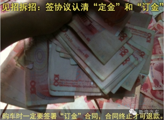 购车时一定要签署“订金”合同,合同终于才可退款。