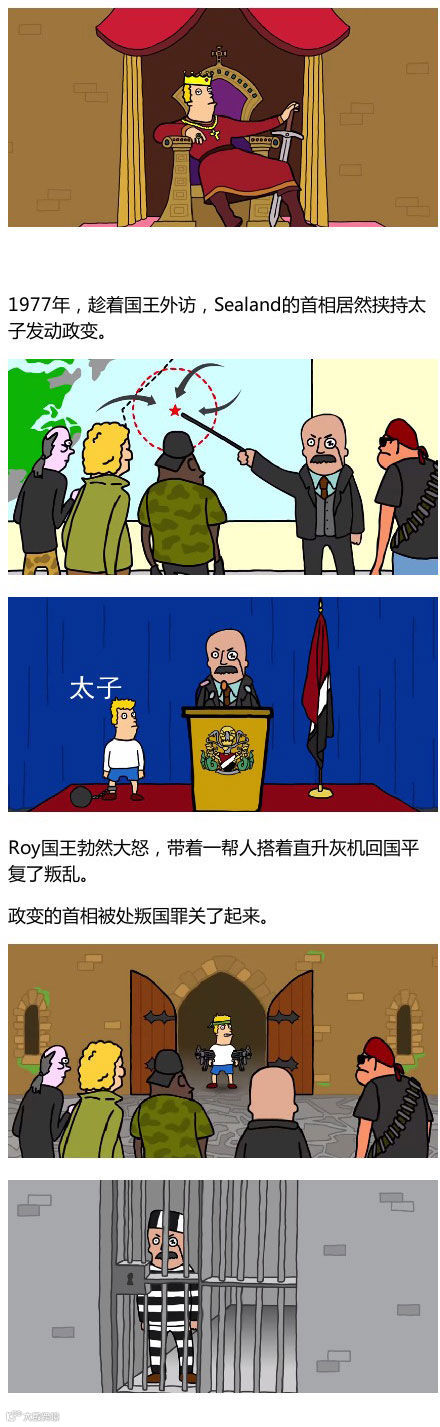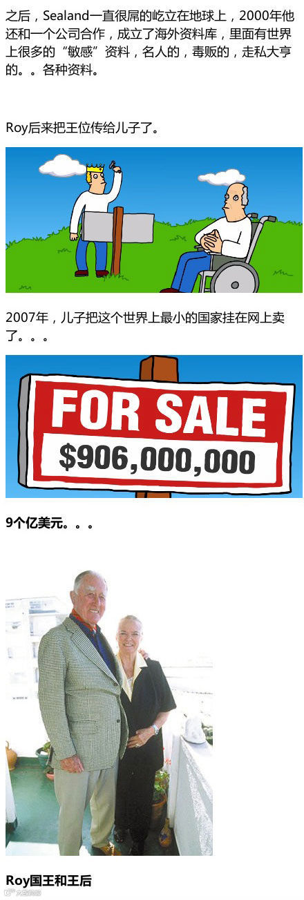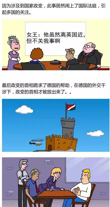 如果在搜索引擎里键入关键词“ThePrincipality of Sealand(西兰德公国)”,会发现有两个“官方网站”,其中一个是“冒牌”的。原来犯有“叛国罪”的艾森博克回到德国后,建立了反对罗伊·贝茨的“流亡政府”。