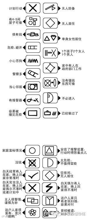 有多年反扒经验的治安巡防大队队长倪建军说,小偷在作案前确实会在居民家的门、墙上做一些标记,而每一种记号代表一个含义,同行一看便知道这个家庭的情况。