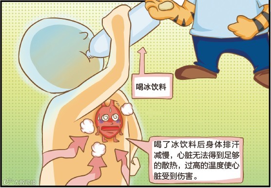 满头大汗喝冰水很容易使心脏受伤,小口慢吃冰的食物才能确保不伤身。