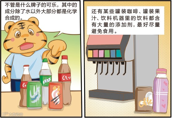●可乐:不管哪个牌子的可乐,其中的成分除了水之外,大多数是化学合成的,如甜味剂、香料、色素等。可乐打开之后就算不放冰箱里也不会变酸或腐败,说明它是连细菌都不吃的东西,根本不能称之为食物。