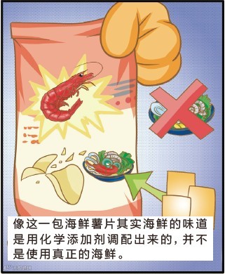 从小就认识食物里的化学添加剂,尽量不把这些毒素吃进身体,可以确保饮食的健康。
