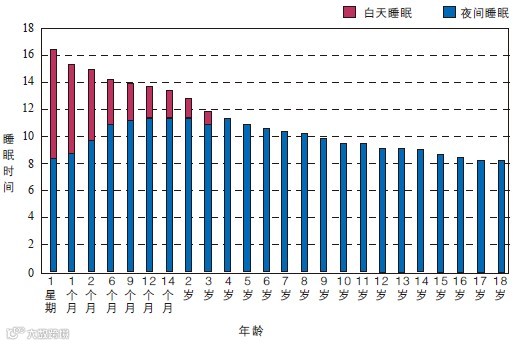 下图是不同年龄儿童应有的睡眠时间,愈小的儿童需要愈多的时间。