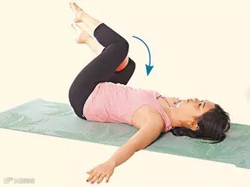 3.再抬高骨盆,从腰开始慢慢将背部向下凹,颈部自然往前延伸抬起,停留数秒后回正为1次。