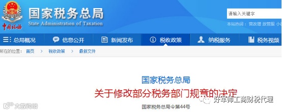 《国家税务总局关于修改部分税务部门规章的决定》,已经2018年6月5日国家税务总局2018年度第1次局务会议审议通过,现予公布,自公布之日起施行。