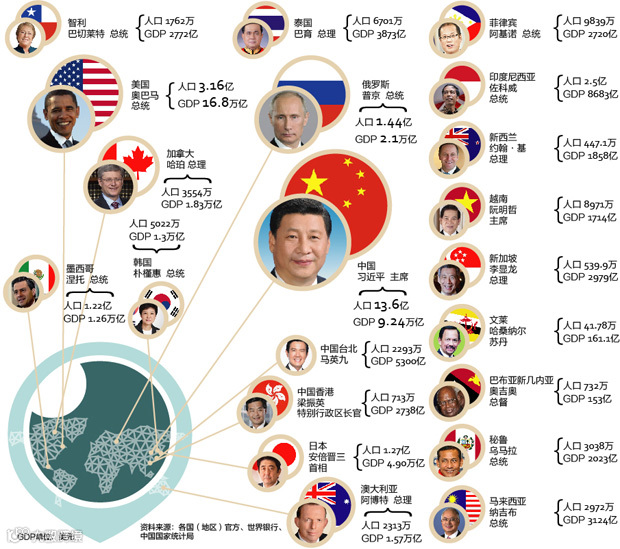 加拿大总理哈珀、不受待见的日本首相安倍和菲律宾总统阿基诺,也都束装赴京;APEC峰会外,习总又召集七个小伙伴开会,商讨互联互通。
