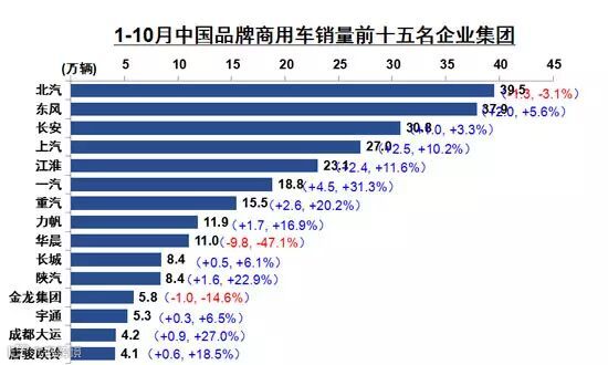 10月,商用车生产29.92万辆,环比增长0.04%,同比增长3.53%;销售30.58万辆,环比增长3.38%,同比增长7.40%。1-10月,商用车产销分别完成291.10万辆和292.14万辆,同比分别增长4.93%和4.58%。