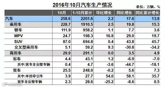 值得注意的是,10月份重型货车的产销量比上年同期分别增长44.59%和54.01%,远高于行业平均水平。对此,中汽协副秘书长姚杰分析认为,在经济整体回暖的大背景下,社会对于煤炭和钢铁等生产资料的需求量持续增长,有力地推动了重型货车的产销量;另外,国家出台的“治超政策”也助推了重卡的销售。