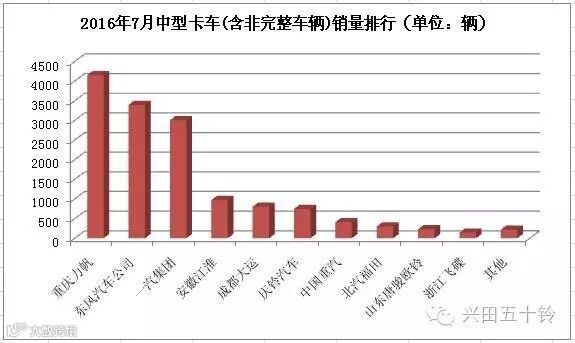 7月份中型卡车(含非完整车辆)销量排行(单位:辆)