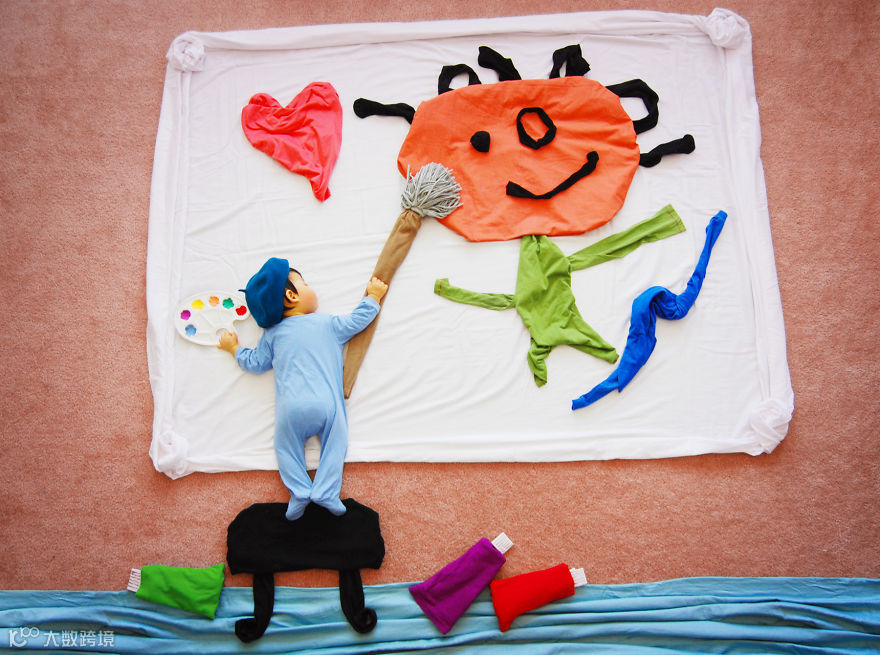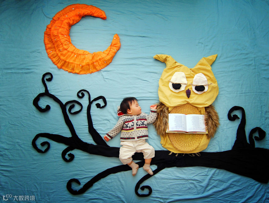 这位妈妈为自己熟睡中的小宝宝创造了各种奇幻旅程,并且还在去年芬兰妈妈Adele Enersen举办的全球睡觉宝宝主题摄影比赛中一举夺冠,此后筱妍妈妈除了继续发布新作,还将各种常用道具和制作教学以及睡觉宝宝摄影概念一同与网友分享。