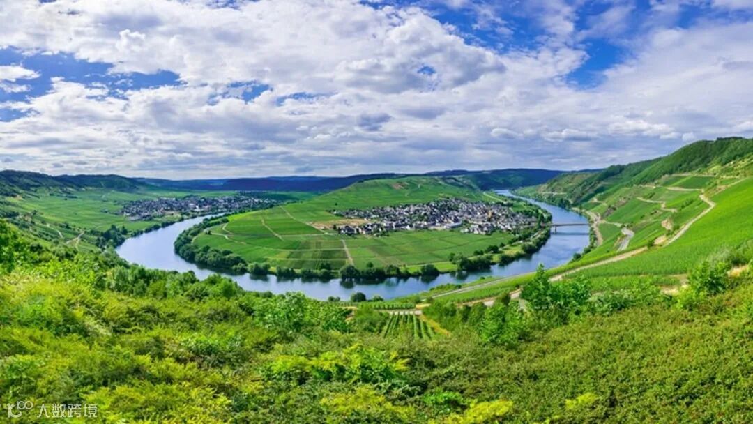 德国是世界上纬度较北的葡萄酒产区,境内共有13个葡萄酒产区。摩泽尔河流域为德国第三大产区,从伯尔(Per)延伸至与莱茵河交会处科布伦兹(Koblen2),于德国境内全长为243公里。早在两千年前古罗马人和凯尔特人早已意识到摩泽尔河谷的天然优势,于此开始种植葡萄。蜿蜒的河谷、陡峭山坡上的葡萄园、板岩地质为该产区的象征。摩泽尔河流域的种植面积约为8000公顷,被公认为德国优质雷司令产区。