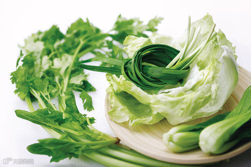芹菜 富含视黄醇以及钾、钠、钙、磷等成分。与粳米煮粥,有“伏热、利小便”的作用,另外,芹菜配百合清炒清淡开胃。