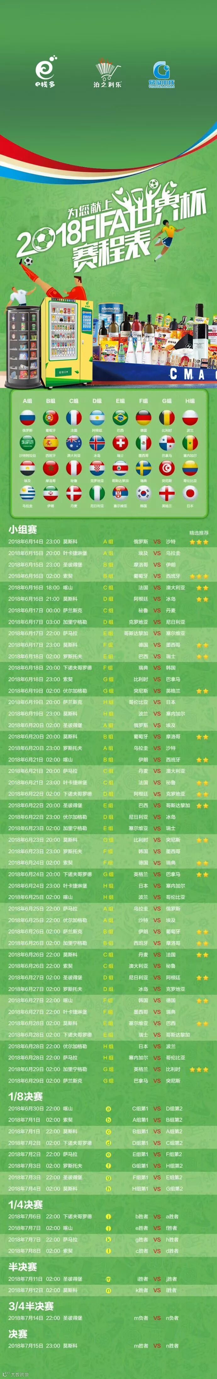 各大城市e栈多自动售货机均有售,亲们可尽情选购!下面放送本届世界杯赛事日历↓