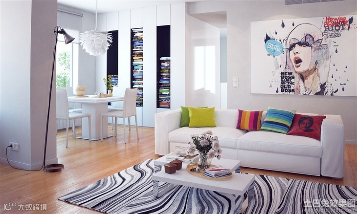颜色:多运用白色、灰色系作为基调,再根据家居设计的不同要求配上其他颜色的家具,表现个性及张力;