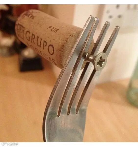 找不到开瓶器还能应急,用叉子轻松开瓶塞毫无压力。