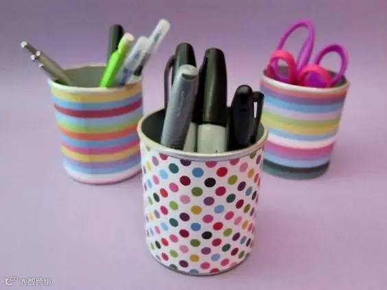 自己画上花纹或贴上装饰,摆在餐桌上当花瓶,谁都看不出来原来是薯片罐子。