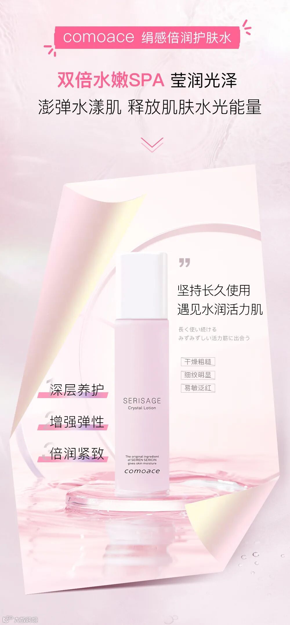 始于1889年,日本原装进口的轻奢护肤品牌,萃取蚕丝中的珍贵“丝胶”精华,纯天然制作,用科技呵护肌肤如丝般光泽水嫩。