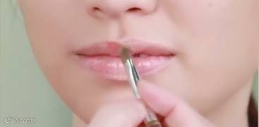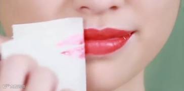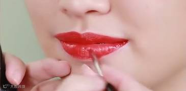 再次将红色唇膏均匀的涂抹在嘴唇中间位置