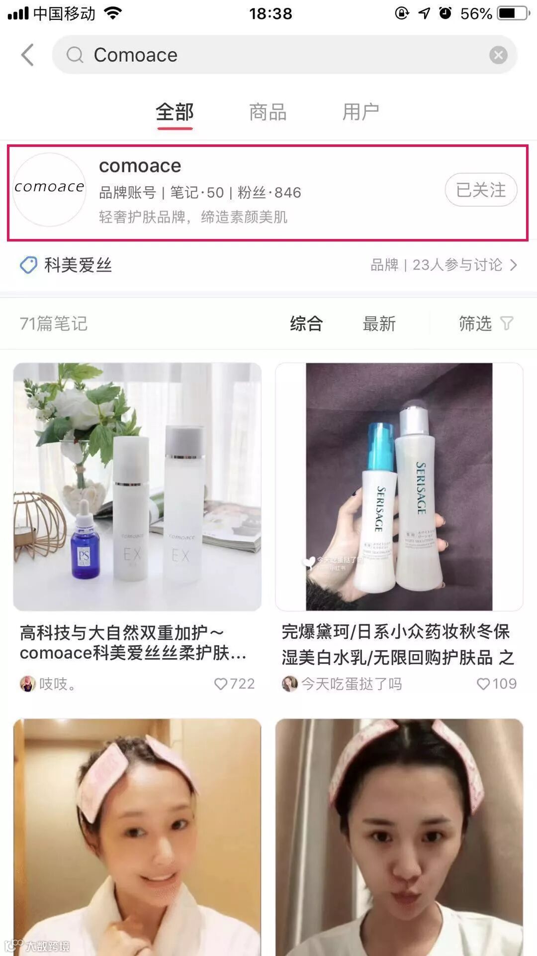 直接搜索“comoace”,找到最上方的品牌账号▲