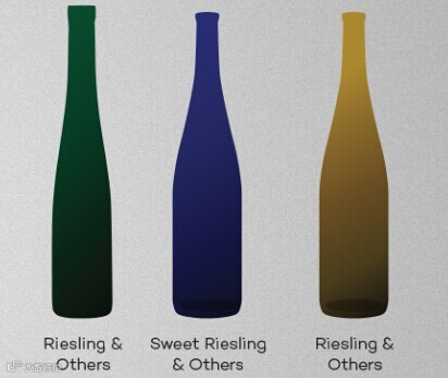 这种体型优雅的笛型瓶多用于法国阿尔萨斯以及德国莱茵河产区的Riesling或者Gewürztraminer等白葡萄酒。