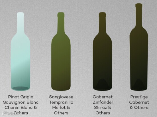 葡萄酒瓶的类型并没有葡萄酒品种那么多。一份1906年的玻璃制造商的手册显示,实际上,葡萄酒瓶的设计样式100多年来都未曾改变。