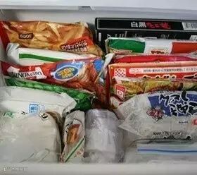 在冷冻层里,可以把一些袋装的速冻产品按照大小整齐排列