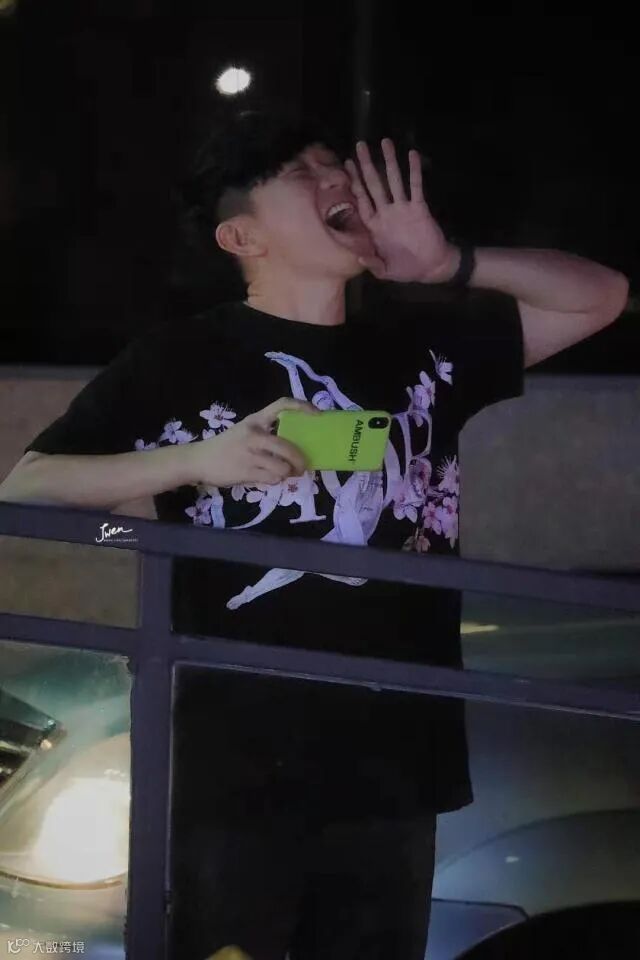 他也十分可爱地拿出手机拍粉丝