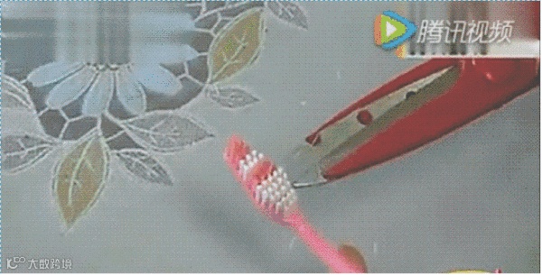 是的你没看错,平常用的牙刷也可以去除毛衣上的毛球噢,先将牙刷横切一刀。