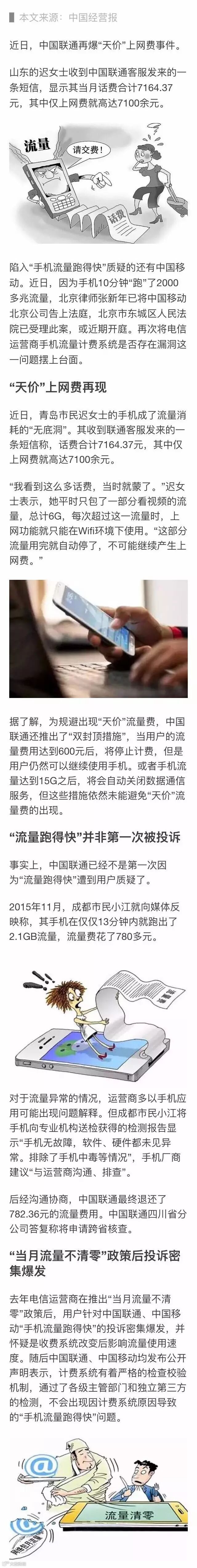 天价 | 一夜上网费7000元 联通移动“流量跑得快”再遭质疑