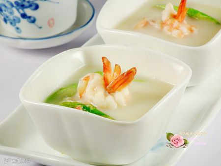 做法:1)准备好所用食材。2)黄豆以前泡发。3)大虾洗净去皮去头。留下尾巴。4)将虾仁从背部切一刀,去掉虾线。5)将虾尾从虾背上穿过成虾球。6)芦笋洗净切成片备用。7)将黄豆放入搅拌机内。8)搅拌成豆浆。9)将豆渣过滤。10)把豆浆倒入锅中,大火煮开,转中火煮至2分钟。11)加入虾球和芦笋,继续煮至2分钟。12)加入盐,勾入薄芡。