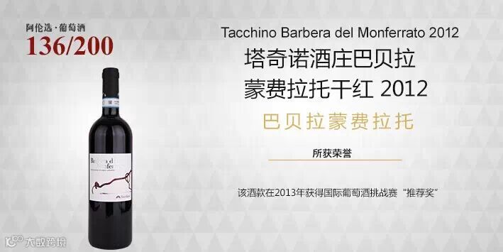 酒塔奇诺酒庄巴贝拉蒙费拉托干红