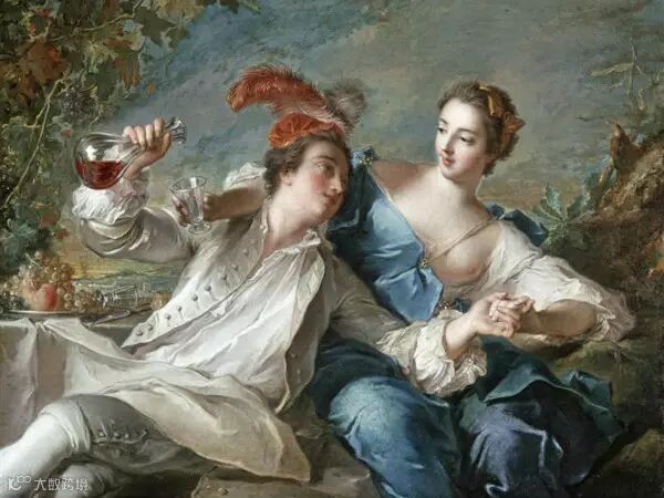 法国宫廷画师让-马克·那提耶(Jean-Marc Nattier)一生以刻画王侯将相的肖像而著称,这幅爱侣图虽然不是他的经典代表作,但却广为人知。道理很简单:还有什么能更加清楚地表达葡萄酒能促进人与人之间爱意这一作用吗?