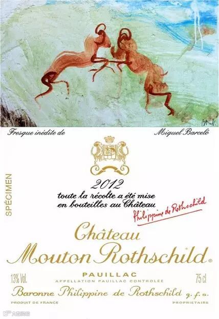 2012年份葡萄酒的酒标由艺术家Miquel Barcelo设计。酒标上,两只公羊角力在一起。在一次次碰撞中彰显2012年份木桐葡萄酒浑厚的力量。